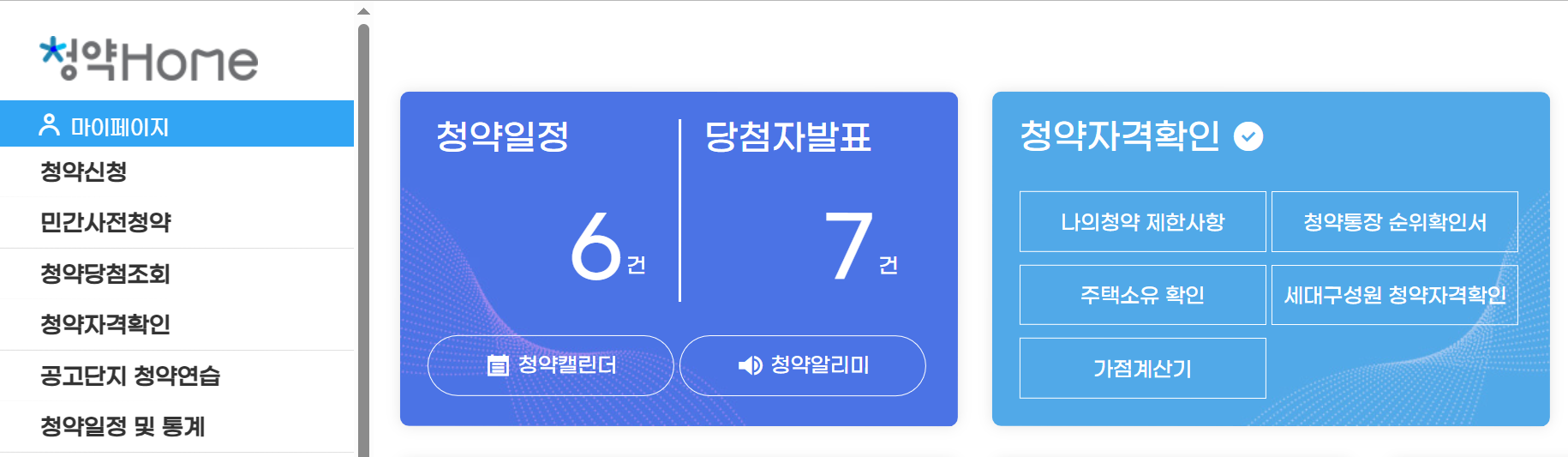 청약홈은 이런 정보를 한눈에 확인할 수 있도록 돕고 자격 계산기까지 제공해 줍니다