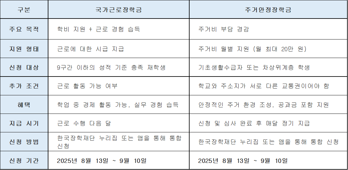 학비 걱정 덜어줄 두 가지 기회 : 국가근로 vs 주거안정장학금