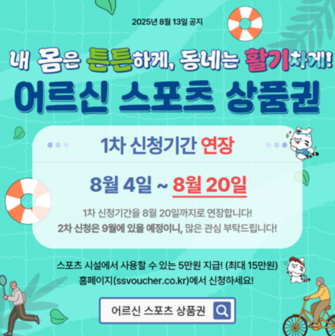 단순한 현금 지원이 아닌 스포츠 시설에서 직접 사용할 수 있는 모바일 상품권을 제공함으로써 경제적 부담을 덜고, 동시에 건강한 생활을 이어갈 수 있도록 돕는 제도입니다. 이번 글에서는 어르신 스포츠 상품권의 신청 기간과 대상, 지원 내용과 사용 방법까지 하나씩 자세히 살펴보겠습니다.