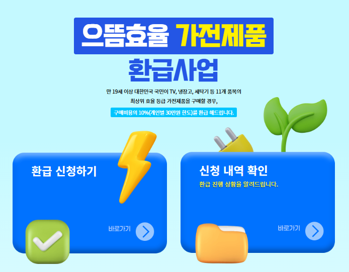 환급 절차도 어렵지 않고 온라인으로 간단히 신청할 수 있기 때문에 가전 교체를 계획하고 있다면 반드시 활용해야 할 제도입니다. 올해 가정의 가전제품 교체 계획이 있다면 이번 기회를 통해 혜택을 챙기시길 바랍니다.